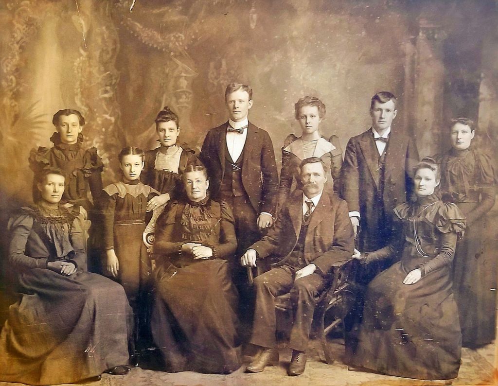 Here’s Norbert Albert Villeneuve and wife Adele Paquet and their family probably around 1902 in Ishpeming, Michigan (colorized thanks to MyHeritage!).